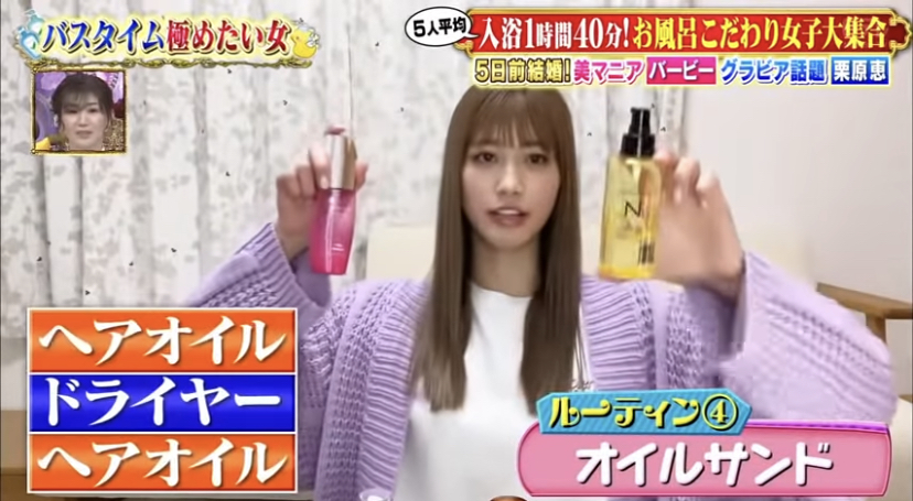 サラサラな髪に仕上げたいときに使うのは、「N.シアオイル」をつけていると紹介していました。