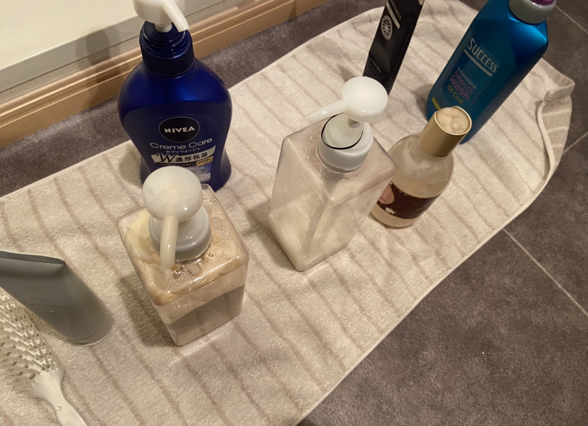 まずは、隅々まで洗えるように、お風呂の中にあるグッズをすべてお風呂の外へ出します。